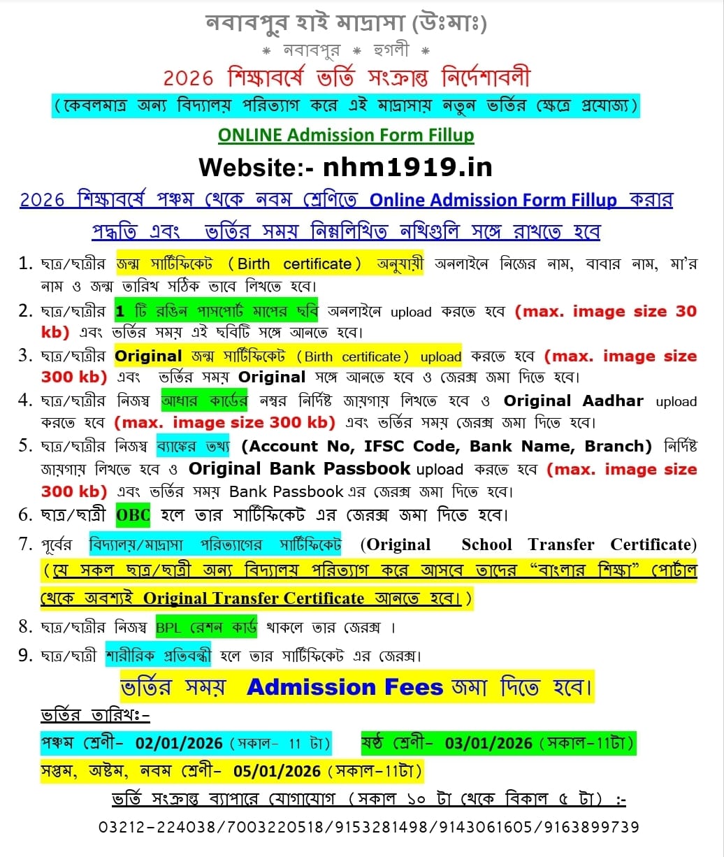 ২০২৬ শিক্ষাবর্ষের নতুন ভর্তি শুরু হয়েছে। আগ্রহী অভিভাবকদের নির্ধারিত সময়ের মধ্যে ভর্তি প্রক্রিয়া সম্পন্ন করার অনুরোধ করা হলো।